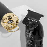 The iconic trimmer is back and better than ever. BaBylissPRO BlackFX+ Outliner Trimmer now features up to FOUR hours of cordless runtime. A professional must-have with upgraded brushless N1 motor and dual bearings for improved efficiency. Graphite deep-tooth 2.0mm T-blade with 360o view high hardness, lower blade temperature and zero gap adjustable. Upgraded high-capacity lithium battery with up to four hours of cordless runtime. USB-C universal charging, as well as standard charging port, capability. All-metal black housing with gold detailing.