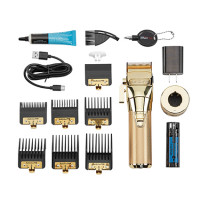The FXONE GoldFX Hair Clipper is a professional, all metal, clipper with a replaceable battery. Experience the new N1 brushless motor with dual ball bearings for greater efficiency. The clipper features an interchangeable lithium battery pack with a quick release button and up to 2.5 hours of run time. Each clipper comes standard with the Gold Ultra-thin Metal Injection Molding (MIM) Blade, featuring an oil reservoir for constant lubrication. Use this professional cordless lithium battery hair clipper to cut hair of all textures with ease and precision. Check out the BaBylissPRO FXONE GoldFX Double Foil Shaver and BaBylissPRO FXONE GoldFX Trimmer for matching FXONE tools, all compatible with the same battery.