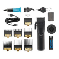 The FXONE BLACKFX Hair Clipper features a new N1 brushless motor with dual ball bearings for greater efficiency. Enjoy the clipper's ease of use with an interchangeable lithium battery pack, which offers a quick release button and up to 2.5 hours of run time. The clipper comes standard with the Black Graphite Ultra-thin Metal Injection Molding (MIM) Blade, featuring an oil reservoir for constant lubrication. Use this professional cordless lithium battery hair clipper to cut hair of all textures with ease and precision. Check out the BaBylissPRO FXONE BlackFX Trimmer and BaBylissPRO FXONE BlackFX Double Foil Shaver for matching FXONE tools, all compatible with the same battery.