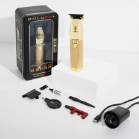 The iconic trimmer is back and better than ever. BaBylissPRO GoldFX+ Outliner Hair Trimmer now features up to FOUR hours of cordless runtime. A professional must-have with upgraded brushless N1 motor and dual bearings for improved efficiency. DLC/Titanium standard-tooth T-Blade with 360 degree view high hardness, lower blade temperature and zero gap adjustable. Upgraded high-capacity lithium battery with up to four hours of cordless runtime. USB-C universal charging, as well as standard charging port, capability. All-metal gold.