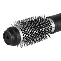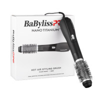 Hate blow-drying? Styling leaving you sore? BaBylissPRO Nano Titanium Hot Air Styling Brush 38mm (1.5) is the 2-in-1 solution. Ultra-lightweight, ergonomic and incredibly time efficient, BaBylissPRO Nano Titanium Hot Air Styling Brush dries and styles in one easy step. With high performance 1000W DC motor, all hair types will love this large styling brush for creating volume, smoothing frizz and adding beautiful shine. Three temperature settings, including a cool setting to lock style in place. Nano Titanium is an exceptional conductor of heat, maintaining stability. Ionic technology enhances frizz-free shine. 38mm (1.5) barrel size is perfect for shorter hair.