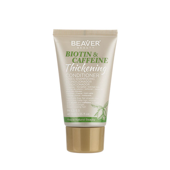 Beaver Biotin & Caffeine Conditioner 40ml strengthens and nourishes weak hair for a healthier look and feel. Helps prevent breakage and promotes healthy growth with a biotin and caffeine infused formula. help promote stronger, thicker-looking hair.