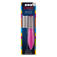 The CREDO PopArt callus flat rasp in pink is a safe alternative to removing calluses. Many micro pyramids rasp off unnecessary calluses. Depending on the hardening, you can choose between the replaceable coarse or fine rasping surface. The Credo callus flat rasp can be used both back and forth, as well as circularly. Rubbed calluses are largely collected in the container under the rasp surface and can be easily disposed of under running water. Simply remove the clip from the holder and dry on a towel after cleaning. Made of stainless steel with colourful PopArt ABS plastic handles. Suitable for nickel allergy sufferers. Diabetics and bleeders should consult your doctor before use. Packaged in blister pack. Made in Solingen, Germany.
