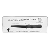The Silver Bullet City Chic Large Conical Curling Iron means fast style! With instant heat up, youll be styling quicker than ever before. A professional yet amazingly affordable conical curler with ionic ceramic surface barrel which creates smooth, shiny curls. Ideal for all hair types to create a variety of curls from ringlets to soft looping curls.