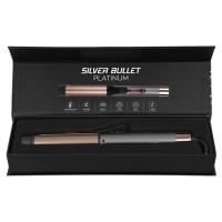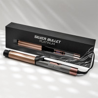 The perfect all-rounder curling iron. Silver Bullet Platinum Curling Iron 32mm is a lightweight curling iron which loves all hair types, textures and lengths. The 32mm tourmaline/ceramic coated barrel smooths hair for sensationally shiny, frizz-free results. Style tight curls or softer waves with amazing ease - the choice is yours! Four heat settings up to 200C, as well as instant heat-up to speed up your styling. Must-have cool tip improves safety. 60 min auto cut off function means no more wondering whether you remembered to switch off the curling iron. Part of the ultra-chic Silver Bullet Platinum collection.