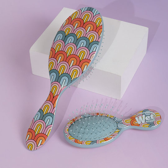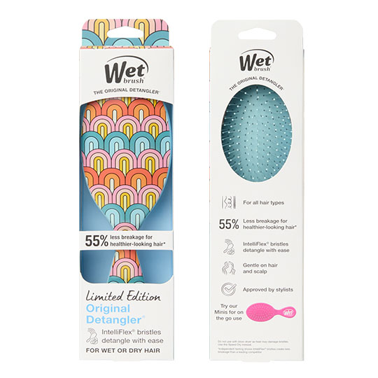 The original, award-winning brush which helps hair stay strong! WetBrush Sun Days Detangler in Rainbow gently loosens knots on wet or dry hair without pulling or snagging. The moment you use it, youll feel the difference and never want to try another detangling hair brush again. Exclusive, ultra-soft IntelliFlex bristles glide through tangles on all hair types with ease. Minimise pain and protect against split ends and breakage. Brush with less force so you can detangle with less damage to hair.