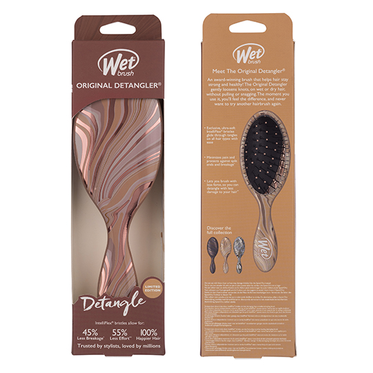 The original, award-winning brush which helps hair stay strong! WetBrush Engineered Nature Detangler Pink gently loosens knots on wet or dry hair without pulling or snagging. The moment you use it, youll feel the difference and never want to try another detangling brush again. Exclusive, ultra-soft Wet Brush IntelliFlex bristles glide through tangles on all hair types with ease. Minimise pain and protect against split ends and breakage. Brush with less force so you can detangle with less damage to hair. Gorgeous, limited edition, abstract design.