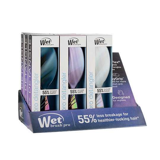 This WetBrush Pro Holographic Detangler Display is decorated in shining iridescent colours. Gently loosen knots on wet or dry hair, without pulling or snagging. Exclusive, ultra-soft IntelliFlex bristles glide through tangles on all hair types with ease. This display box is a great collection for anyone.