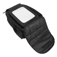 Need organisation and storage on the move? Hipster Equipment Backpack with Detachable Mirror is your new favourite backpack. This is a lightweight, padded yet sturdy equipment backpack with extendable shoulder straps and padded handle on top. 2 x mesh pockets on either side. Rounded zip pocket on front opens to reveal a detachable mirror, attached with plastic clips. This pocket lays flat, doubling as a heat-safe surface. On the opposite side, large elastic hoops and pockets hold every tool and product. The inside is a large compartment with an elastic pocket. Backpack measures 31.5cm (L) x 13cm (W) x 45cm (H).