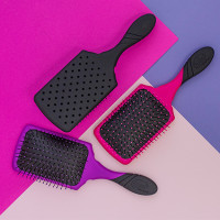 Wet Brush Pro Paddle Detangler Brush Pink glides effortlessly through the hair, detangling with less pain and breakage. With an expanded cushion area for faster detangling, this brush also features ultra-soft Intelliflex bristles which are perfect for use on all hair types and textures. The AquaVent design also allows for fast water drainage and easy cleanup. The ergonomic design features finger rests and a rubberised EasyGrip handle for enhanced comfort and control. Can also be used on real and synthetic extensions.