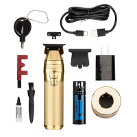 An entire ecosystem of tools based on ONE battery. Change the way you work with BaBylissPRO FXONE GoldFX collection. BaBylissPRO FXONE GoldFX Trimmer is a professional, all metal outlining trimmer with a replaceable and interchangeable lithium battery pack. Quick battery release button and up to 3 hours of runtime. Exposed T-blade with 360 degree views and high torque N1 brushless motor which powers to 7,200 rpm. Use this trimmer for crisp edge ups, hard lines and other detail work. Check out the BaByliss PRO FXONE GoldFX Clipper and Double Foil Shaver, all compatible with the same battery. A revolution in efficiency!