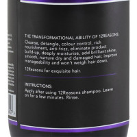 The transformational ability of 12Reasons: Cleanse, detangle, colour protection, rich nourishment, anti-frizz, eliminate product build-up, deeply moisturise, add brilliant shine, smooth, nurture dry and damaged hair, improve manageability and wont weigh hair down.