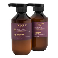 Rejuvenate, smooth and moisturise hair with this dual-botanical conditioner powered by marula oil and argan oil. Theorie Marula and Argan Travel Set is a smoothing and rejuvenating shampoo and conditioner, ideal for dehydrated, distressed and over-processed hair. Hair is enriched with nourishing argan, marula, sage and grapeseed oils. A specialised blend of antioxidants and moisturising fatty acids, as well as fortifying keratin, protects hair from future breakage and encourages brilliant shine.