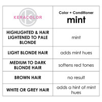 Keracolor Color Clenditioner Colour Shampoo in Mint cleanses, nourishes and imparts gorgeous colour onto your hair! This non-lathering conditioning cleanser instantly deposits direct dye colour pigments with every wash. Perfect to maintain vibrant coloured hair and prevent fading, or mix it up between salon visits. Colours becoming more vibrant and longer lasting with every wash. Pigment can last up to 10-15 washes, depending on porosity and pre-lightened level!